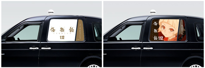 仕掛け1|『傷物語 -こよみヴァンプ-』が、タクシーの窓ガラスに登場
