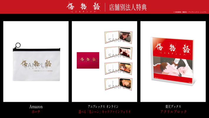 2024年7月24日(水)に発売の「傷物語 -こよみヴァンプ-」Blu-rayのジャケットイラスト、および店舗別購入特典の一部デザインを公開いたしました。