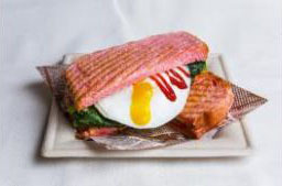 ・「貧血に負けるようなことがあってはならないだろうよと彼の妹たちがこしらえてくれたに違いない阿良々木暦が食すべき貧血予防に適したほうれん草と目玉焼きのホットプレスサンド」800円(税込)