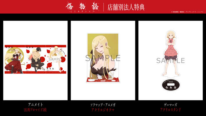 2024年7月24日(水)に発売の「傷物語 -こよみヴァンプ-」Blu-rayのジャケットイラスト、および店舗別購入特典の一部デザインを公開いたしました。